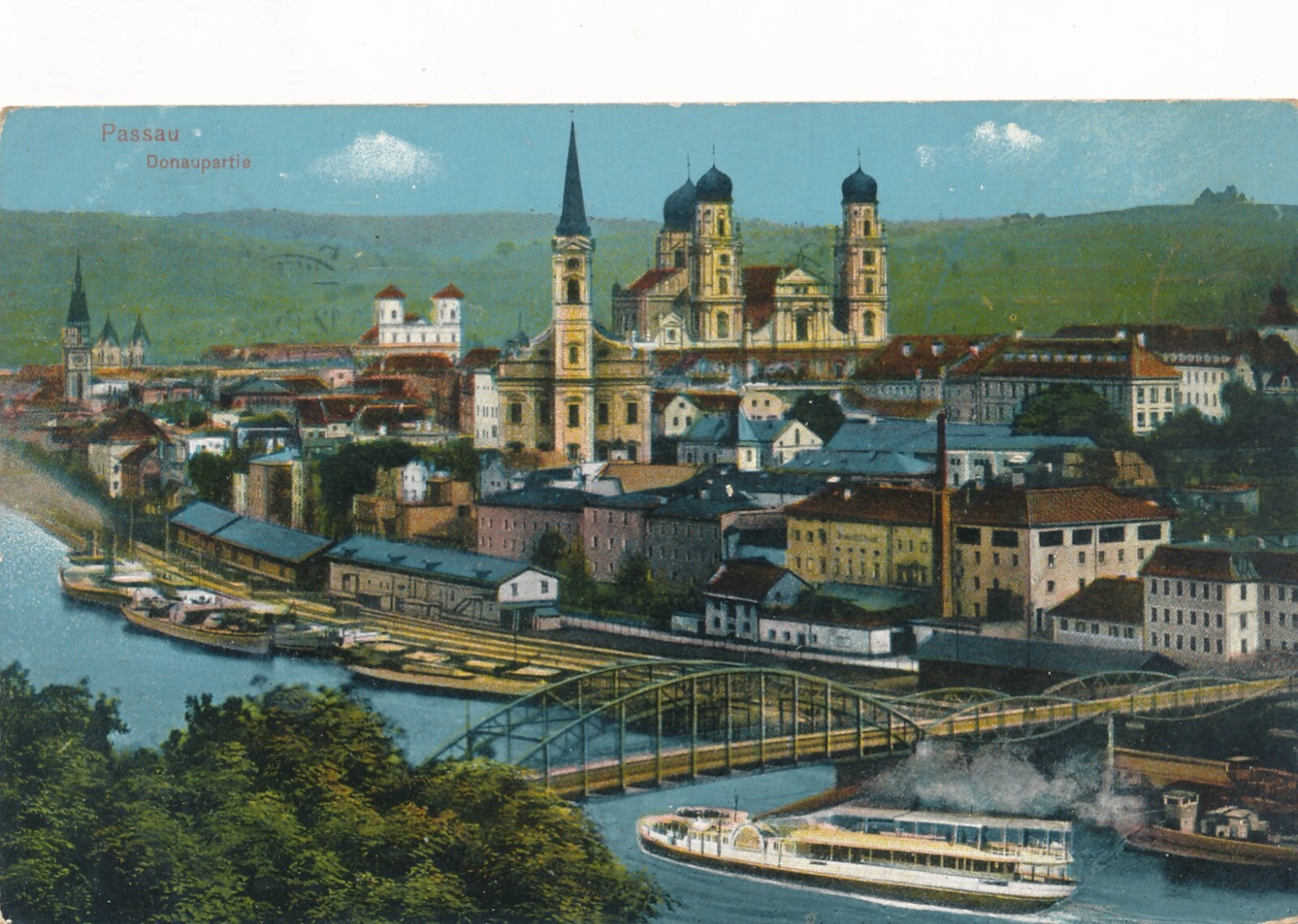 AK aus Passau Bayern Donaupartie mit Dampfer Ansichtskarte (8567)