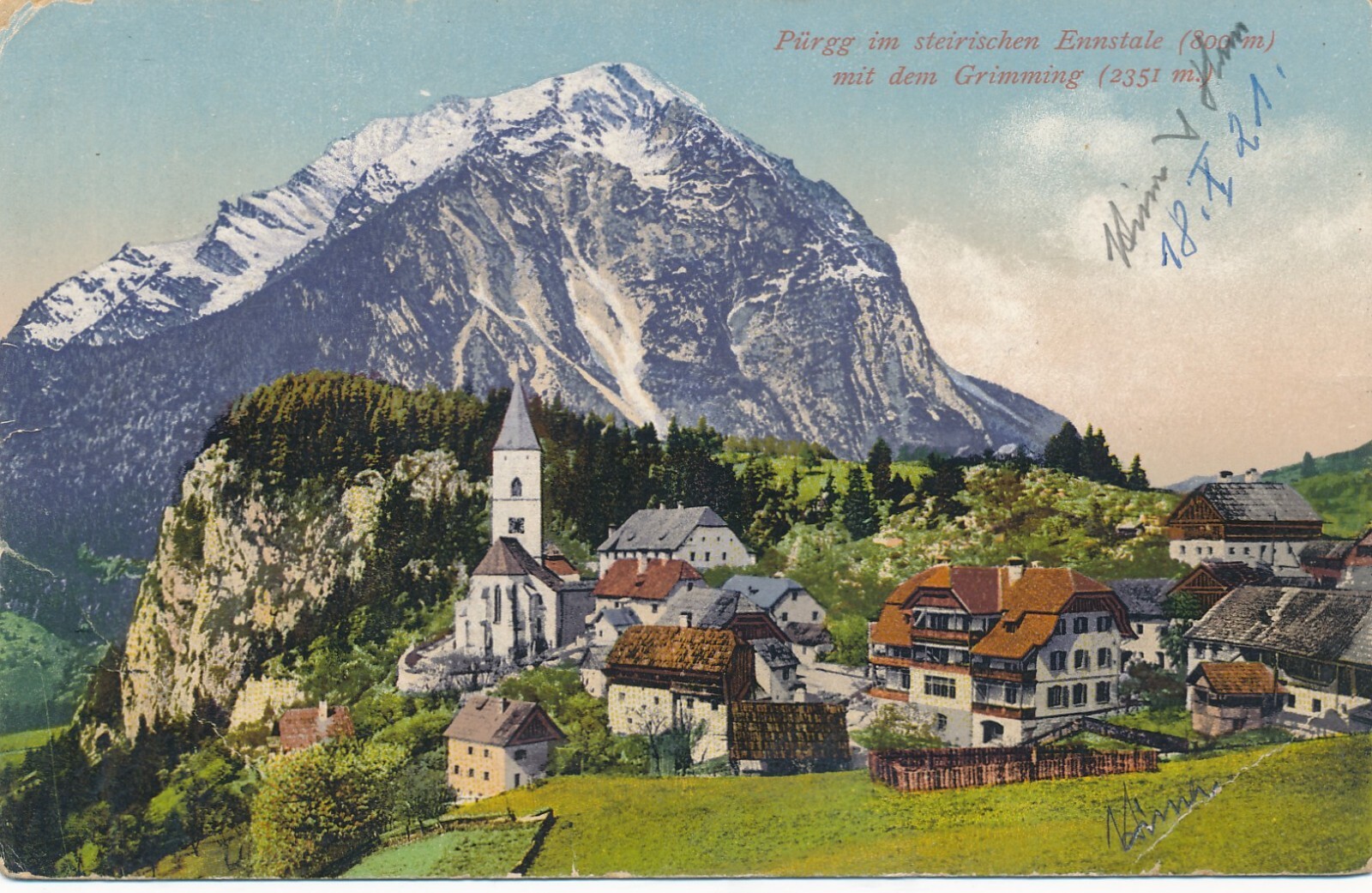 AK aus Pürgg im Ennstale mit Grimming Steiermark Ansichtskarte (13687)