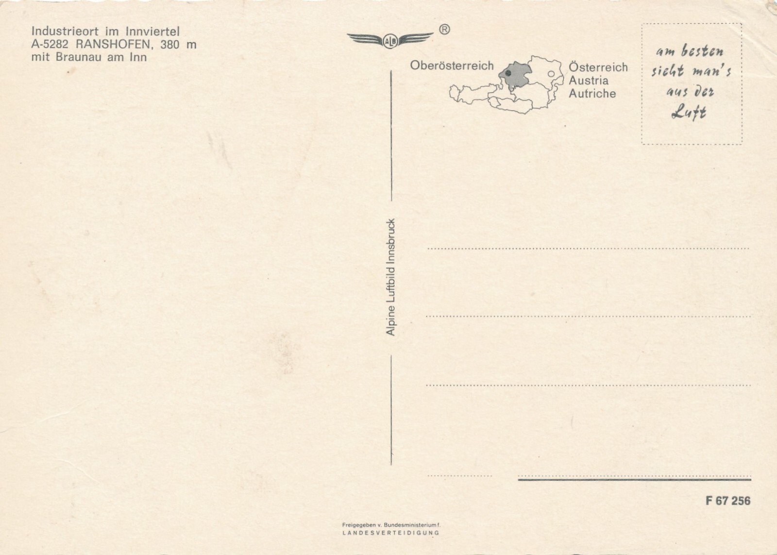 AK aus Ranshofen Oberösterreich Fliegerfoto Ansichtskarte (J283)