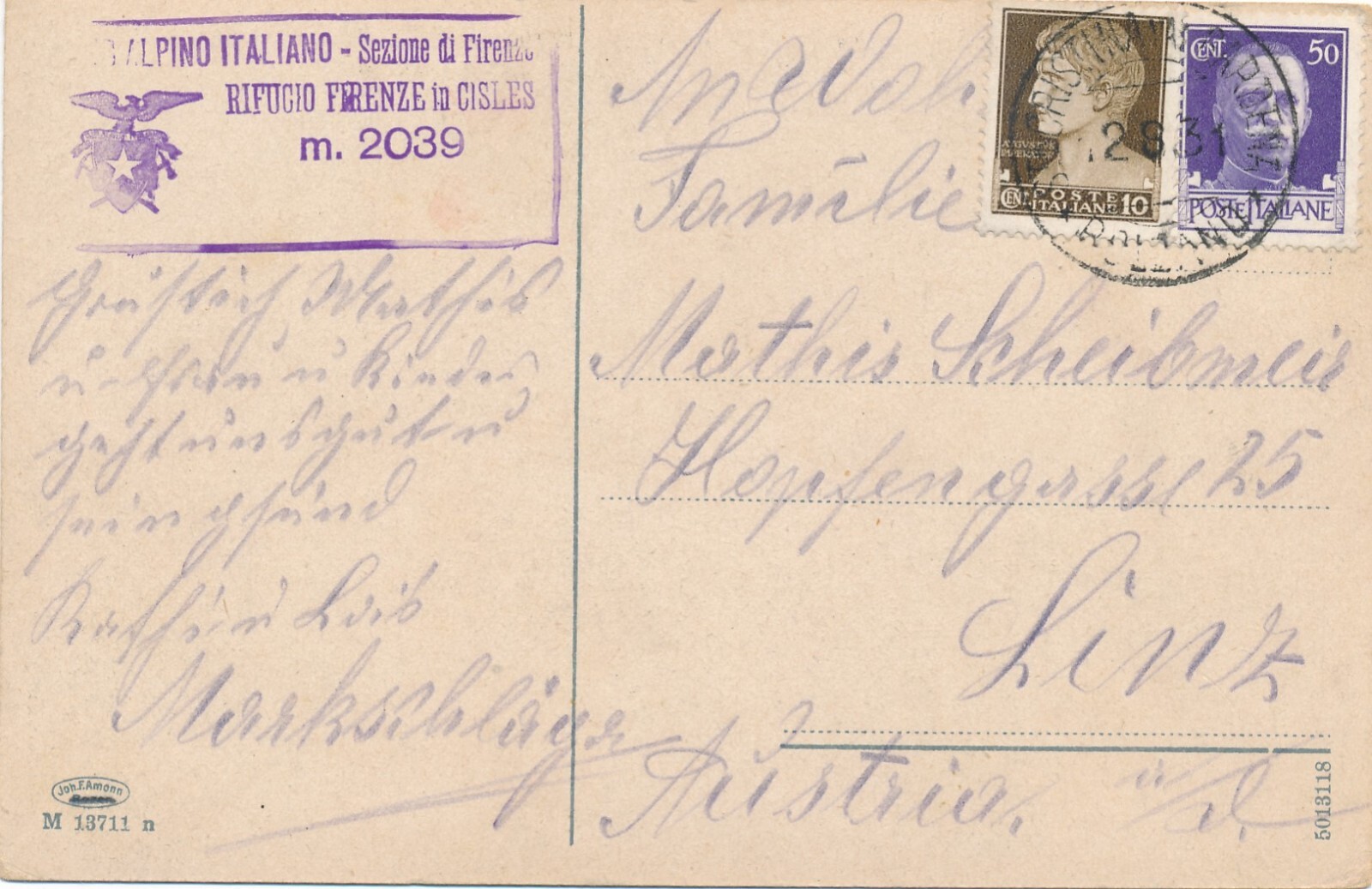 AK aus Rifugio Firenze Cisles Italien Ansichtskarte (13284)
