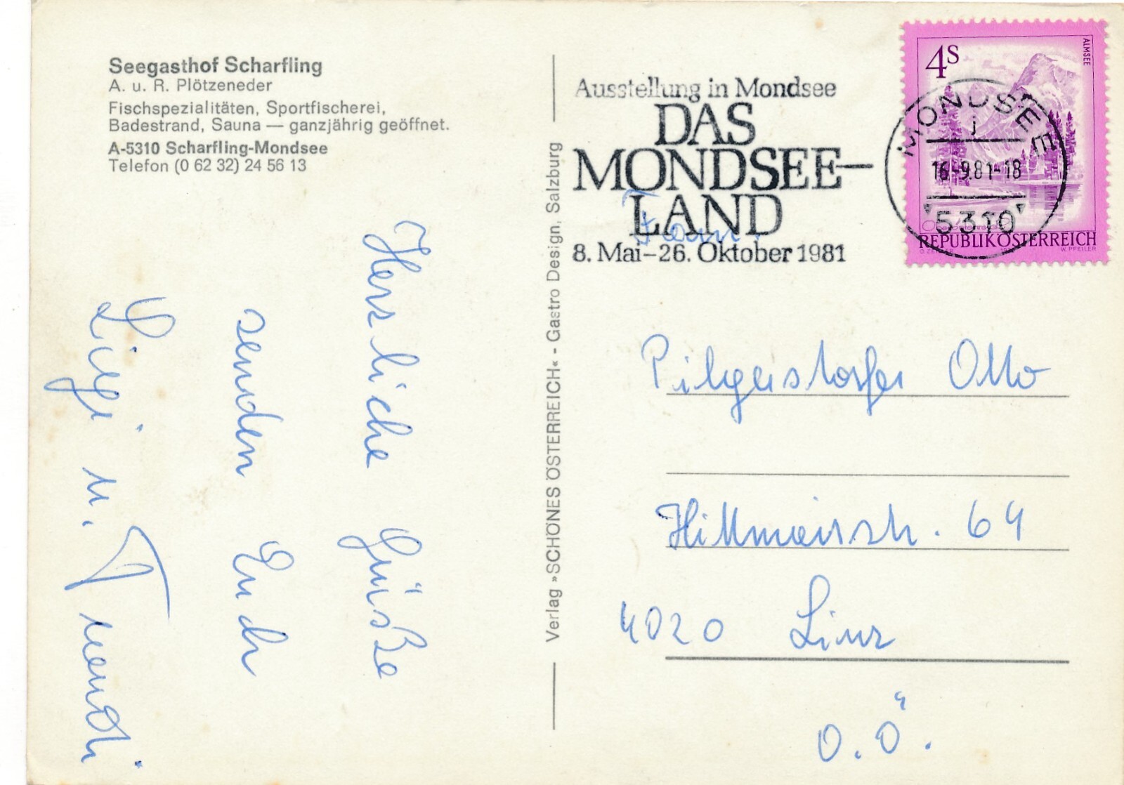 AK aus Scharfling mit Seegasthof Oberösterreich Ansichtskarte (11234)