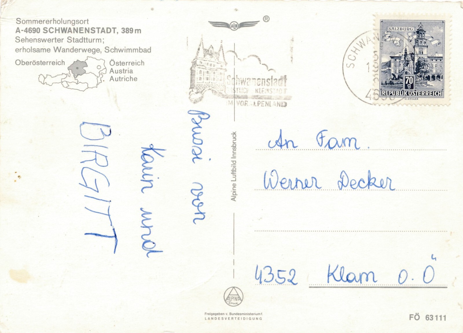 AK aus Schwanenstadt Oberösterreich Fliegerfoto Ansichtskarte (J290)