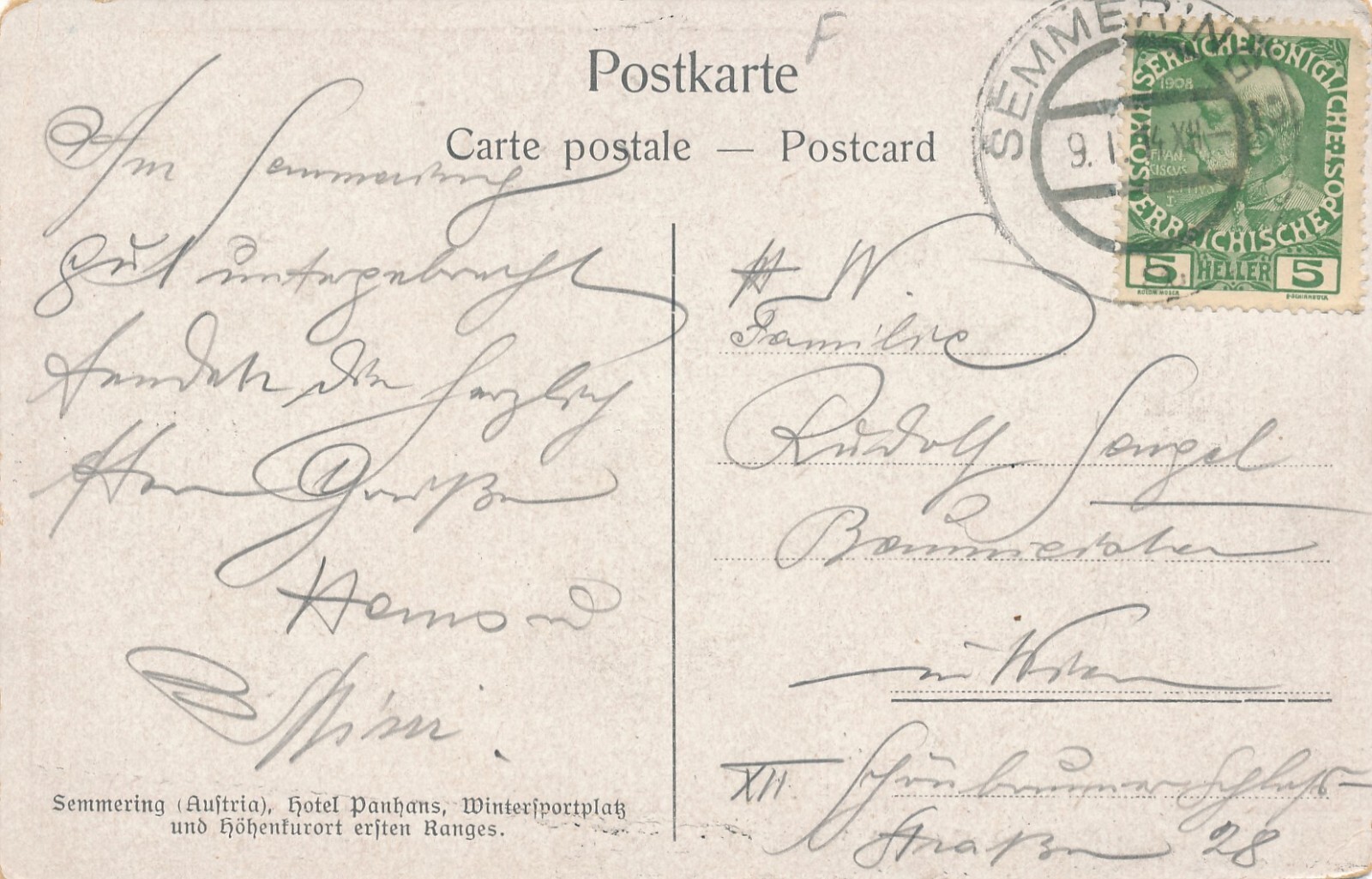 AK aus Semmering mit Hotel Panhans Niederösterreich (7405)
