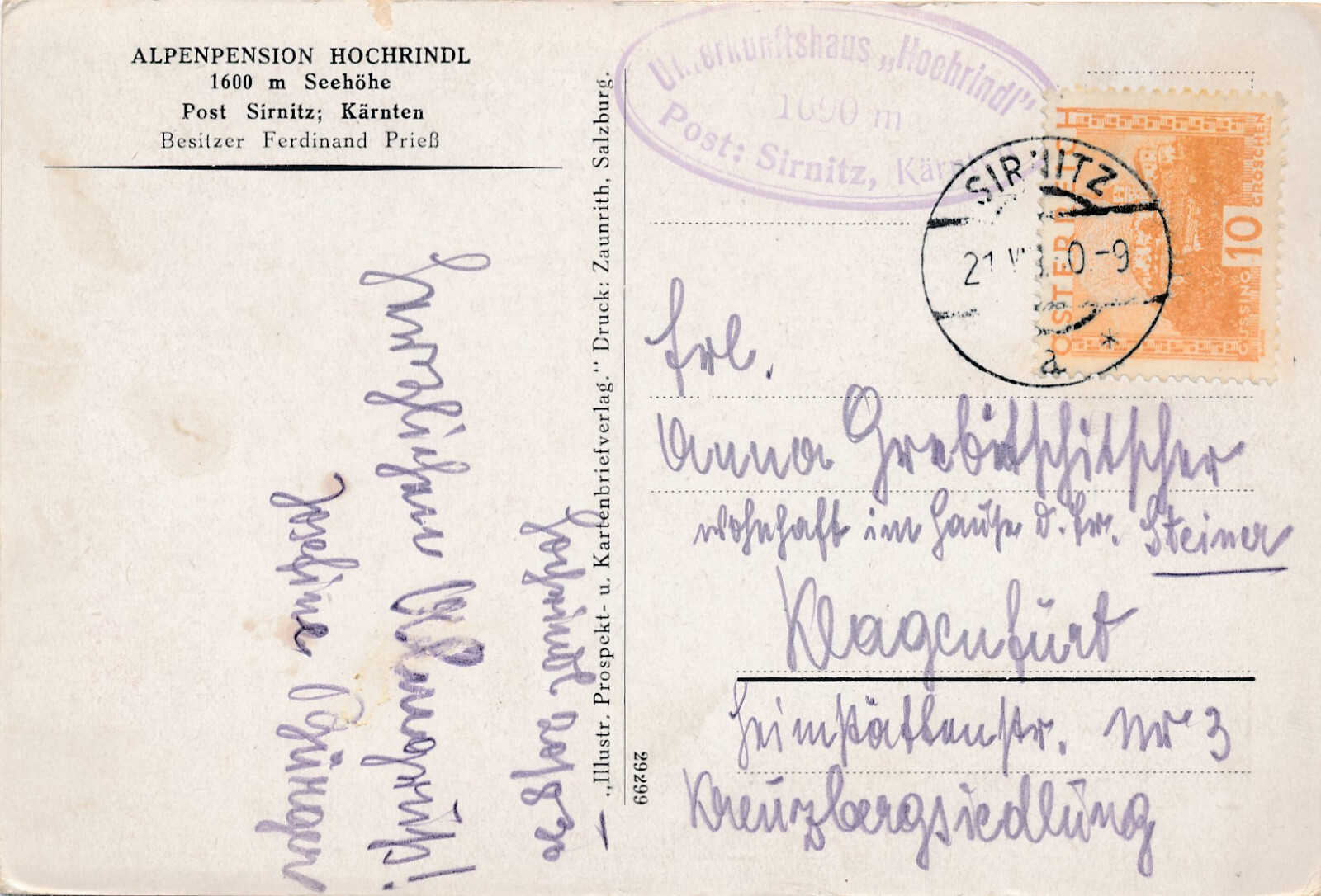 AK aus Sirnitz mit Alpenpension Hochrindl Kärnten (6223)