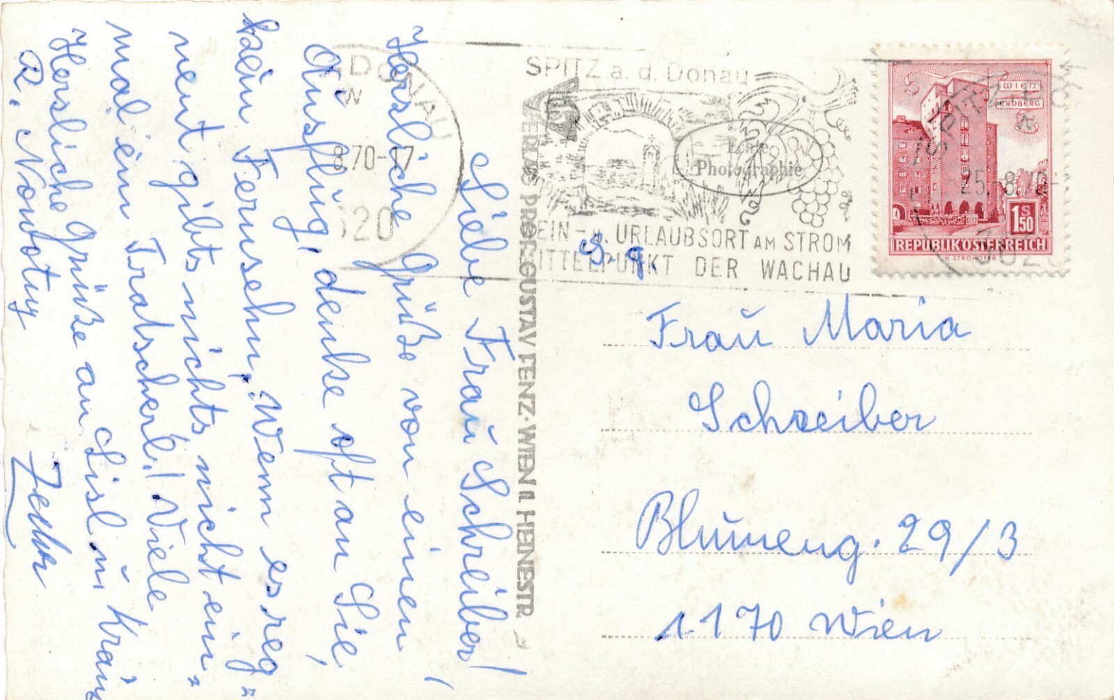 AK aus Spitz mit Ruine Hinterhaus und Dampfer Niederösterreich (6896)