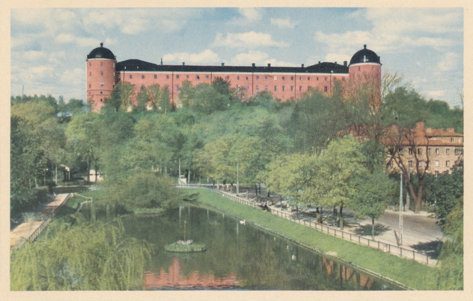 AK aus Uppsala Slottet fran Svandammen Schweden Ansichtskarte (12559)