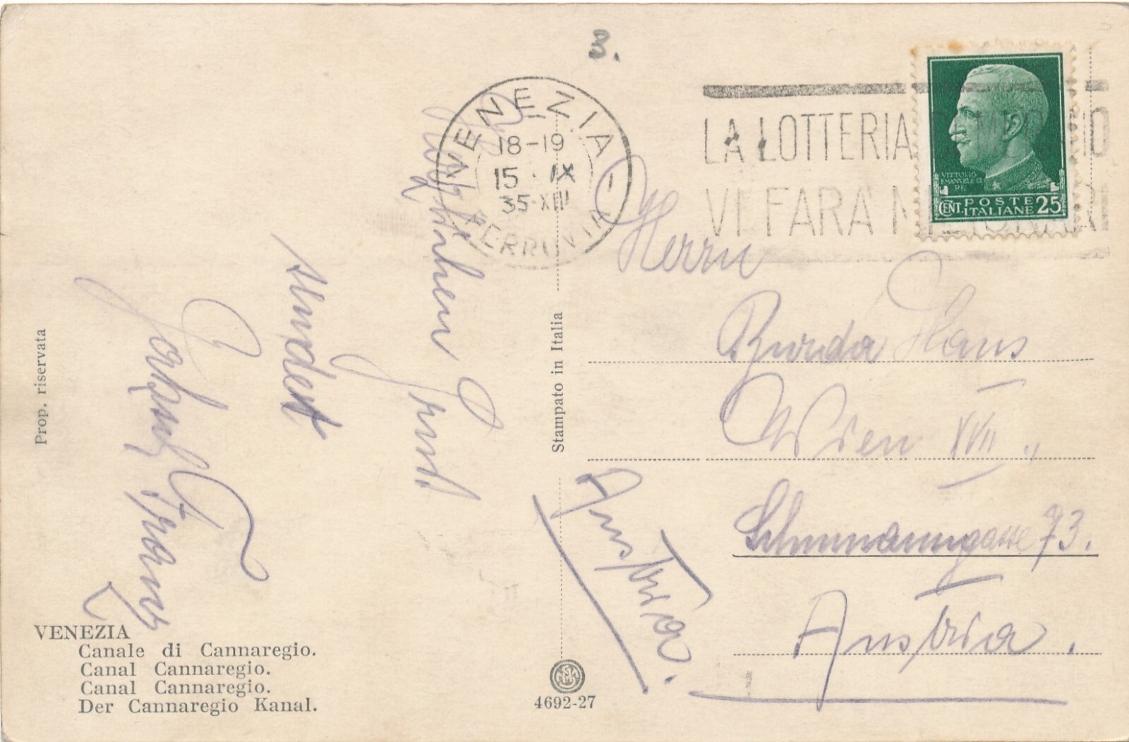 AK aus Venezia canle di Cannaregio Italien Ansichtskarte (9645)