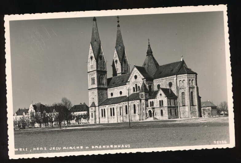 AK aus Wels Herz Jesu Kirche und Krankenhaus Oberösterreich (5255)