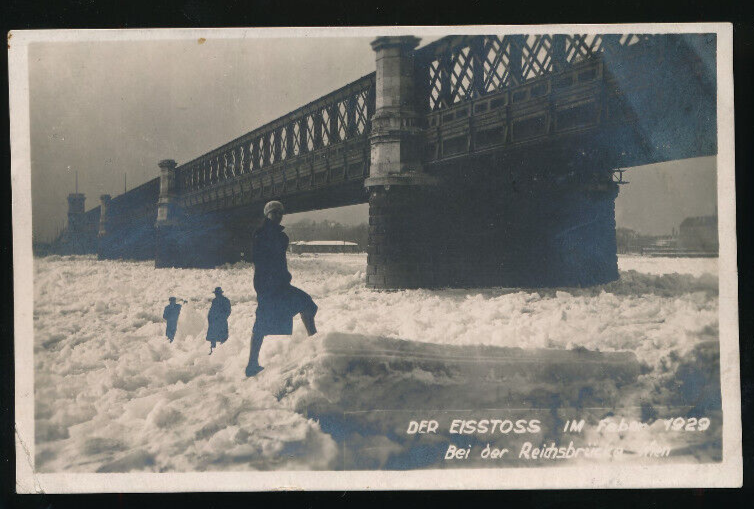 AK aus Wien der Eisstoss im Feber 1929 mit Reichsbrücke (818)