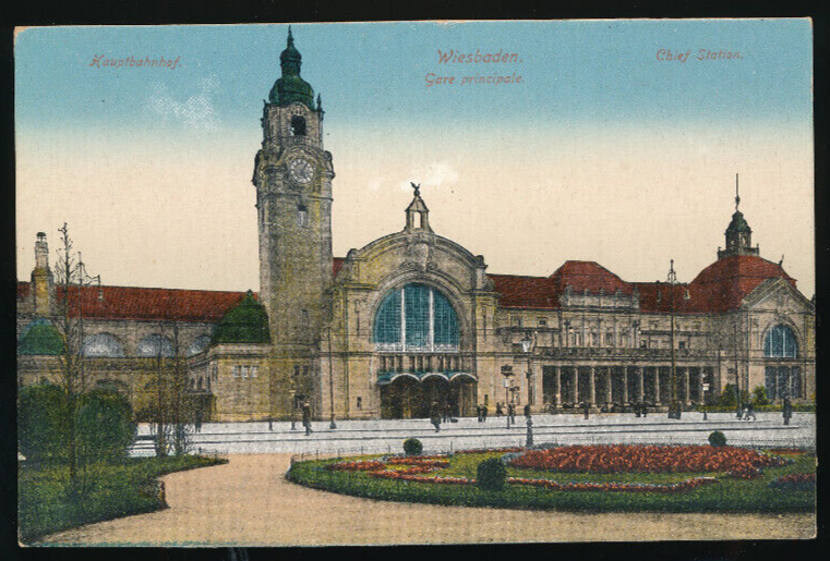 AK aus Wiesbaden Chief Station mit Hauptbahnhof Nordrheinwestalen (3863)