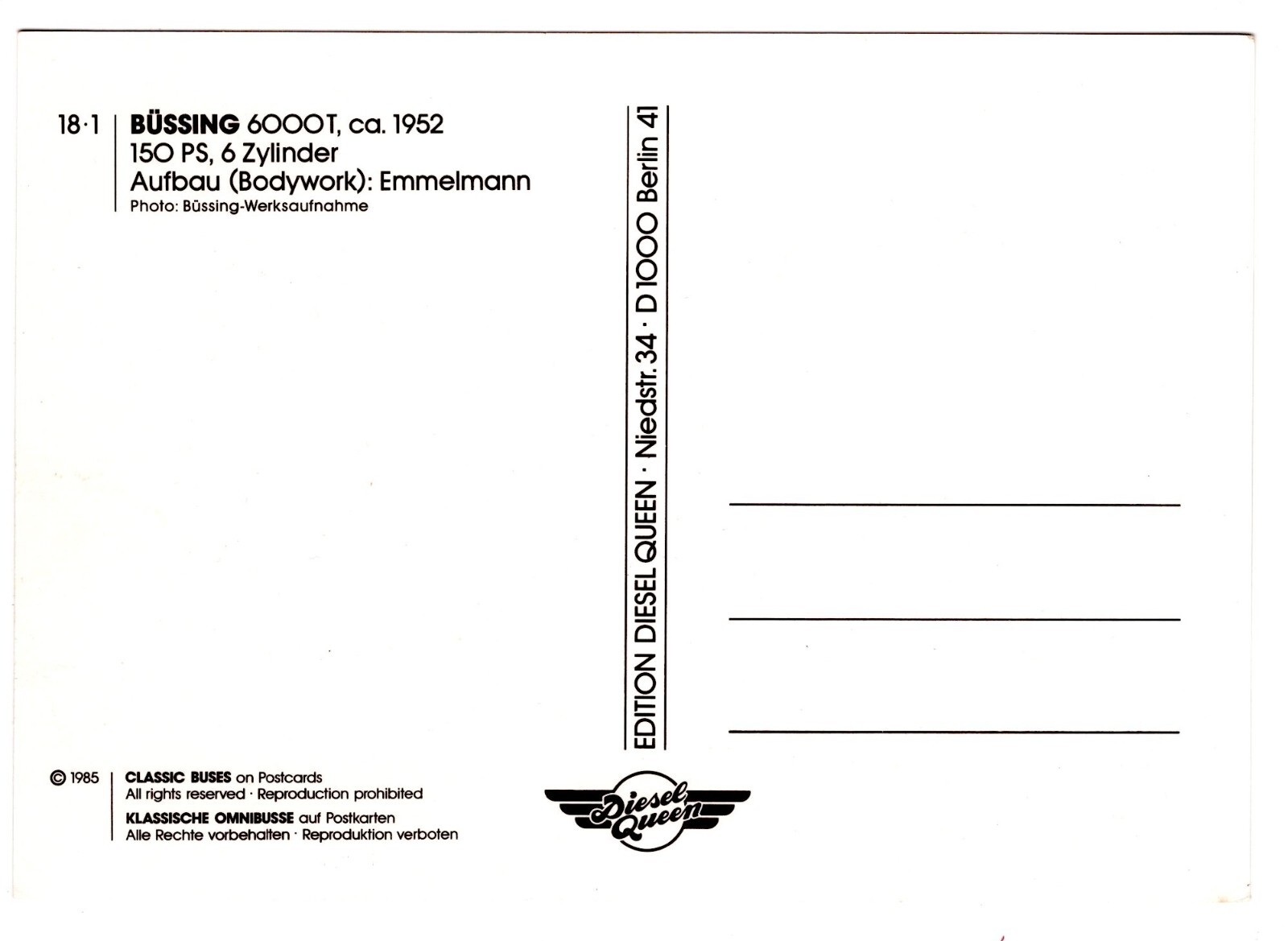 AK, Autobus, Büssing, 6000T Aufbau Emmelmann, Ansichtskarte (S5307)
