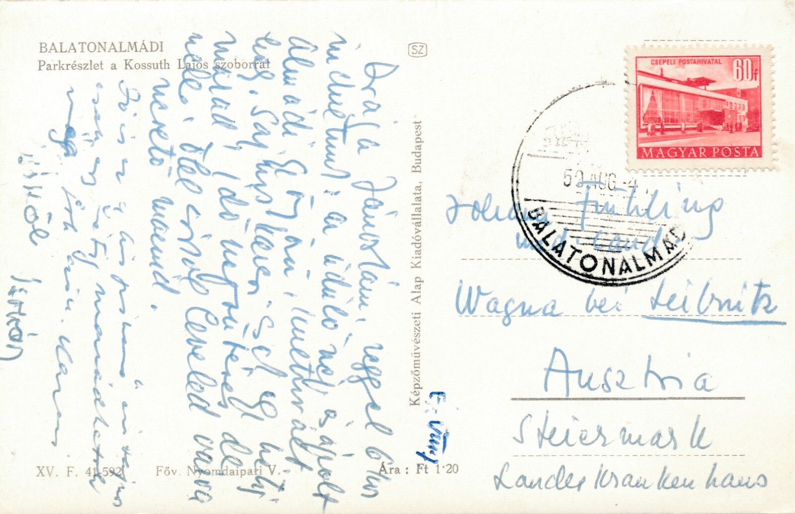 AK, Balatonalmádi, Parkreszlet a Kossuth Lajos szoborral, Ungarn (S560)