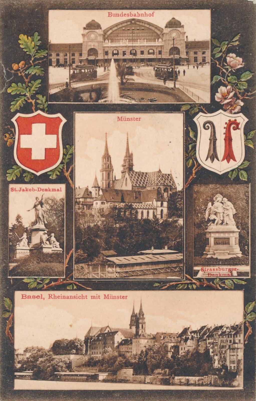 AK, Basel, Rheinansicht mit Münster, Schweiz, St. Jakob Denkmal (S497)
