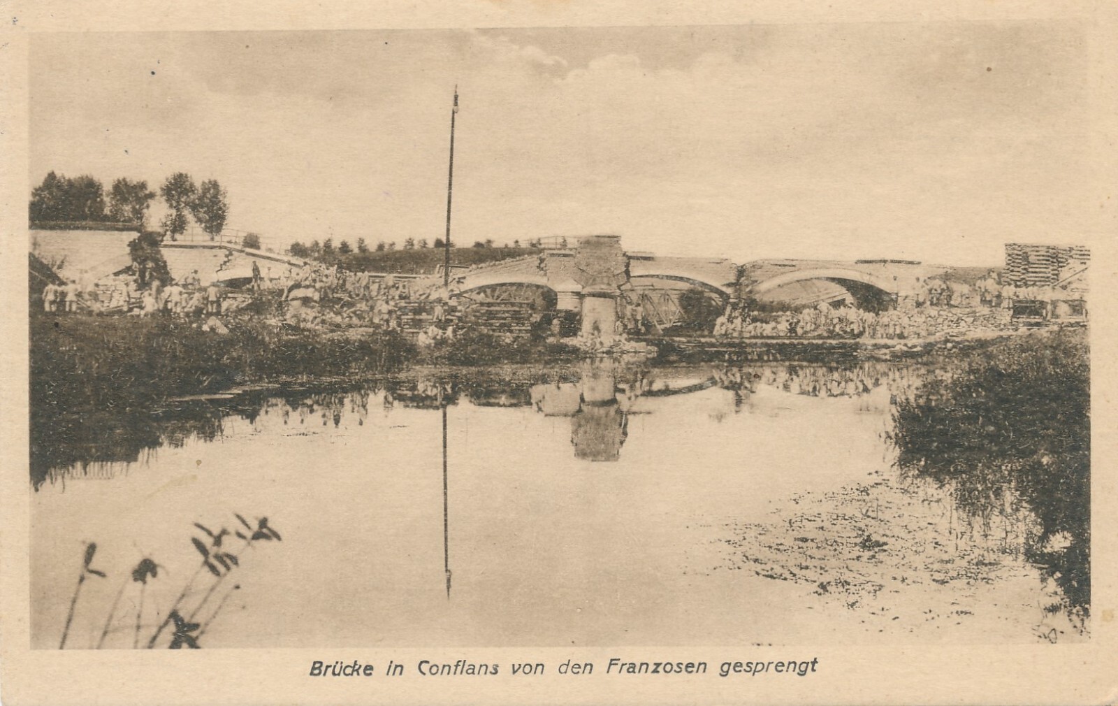 AK, Brücke in Conflans von den Franzosen gesprengt (S1992)