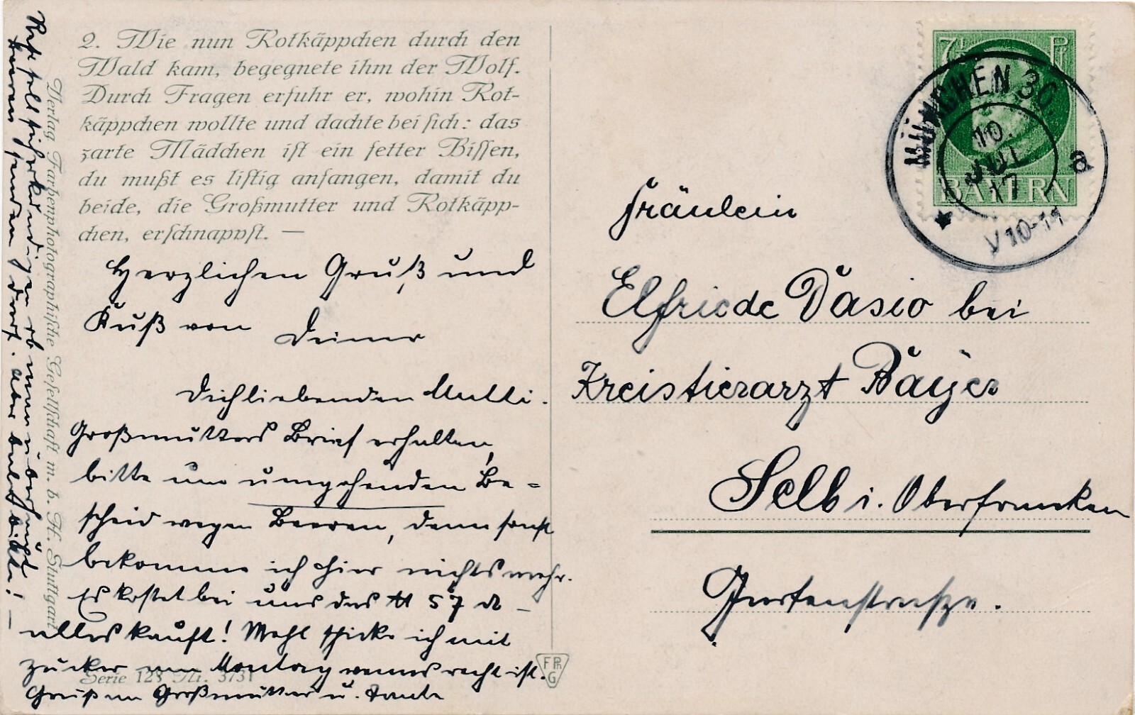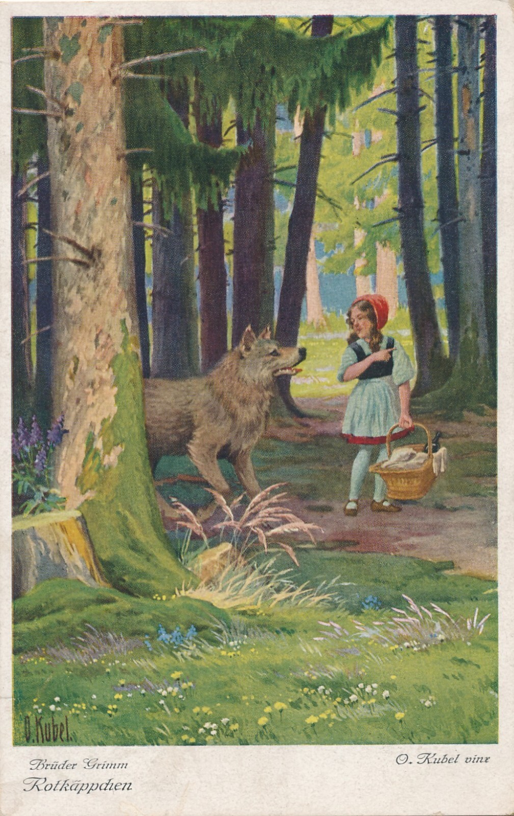 AK, Brüder Grimm, Rotkäppchen neben Wolf im Wald (S1646)