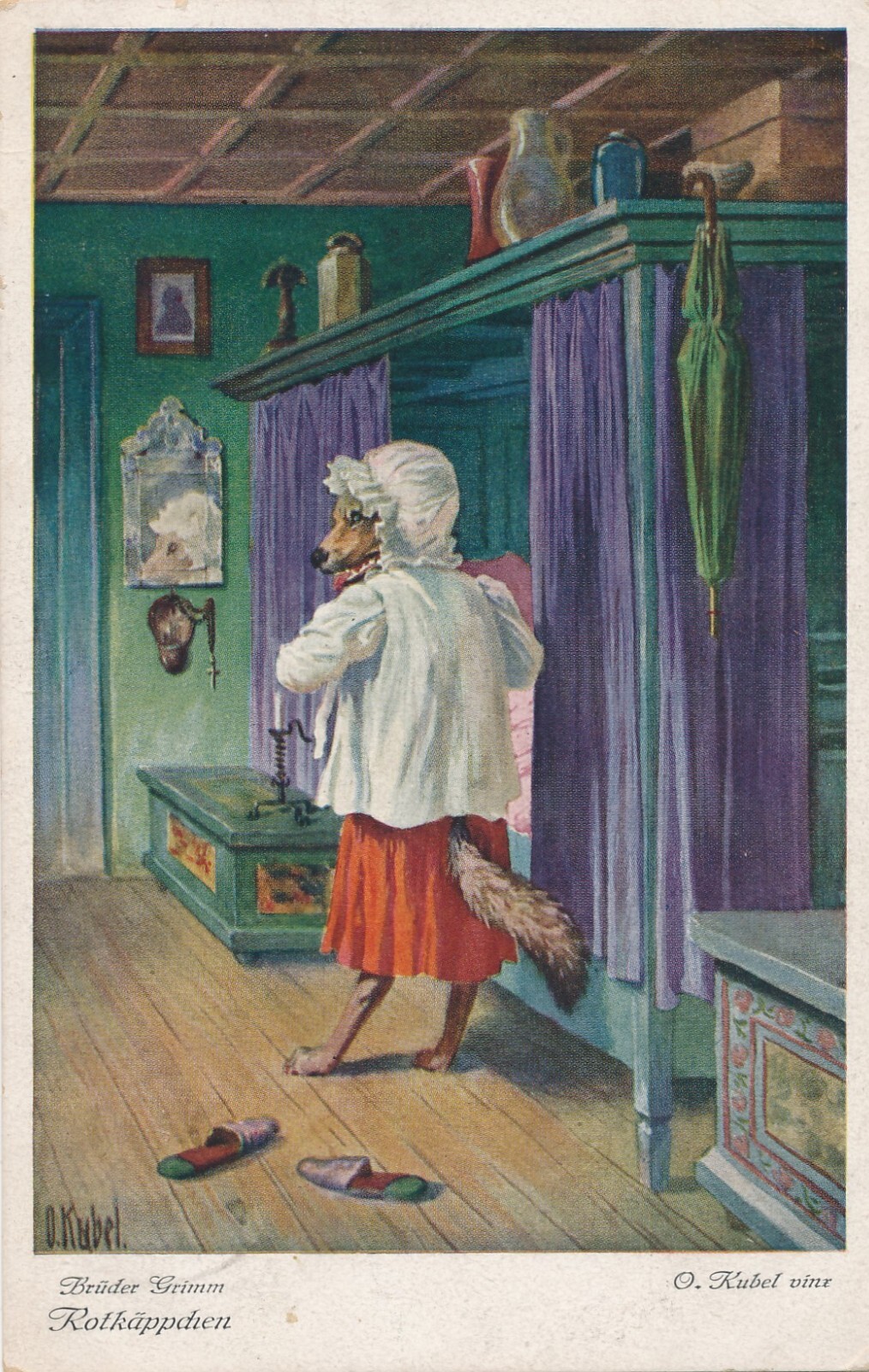 AK, Brüder Grimm, Rotkäppchen, Wolf verkleidet sich (S1643)