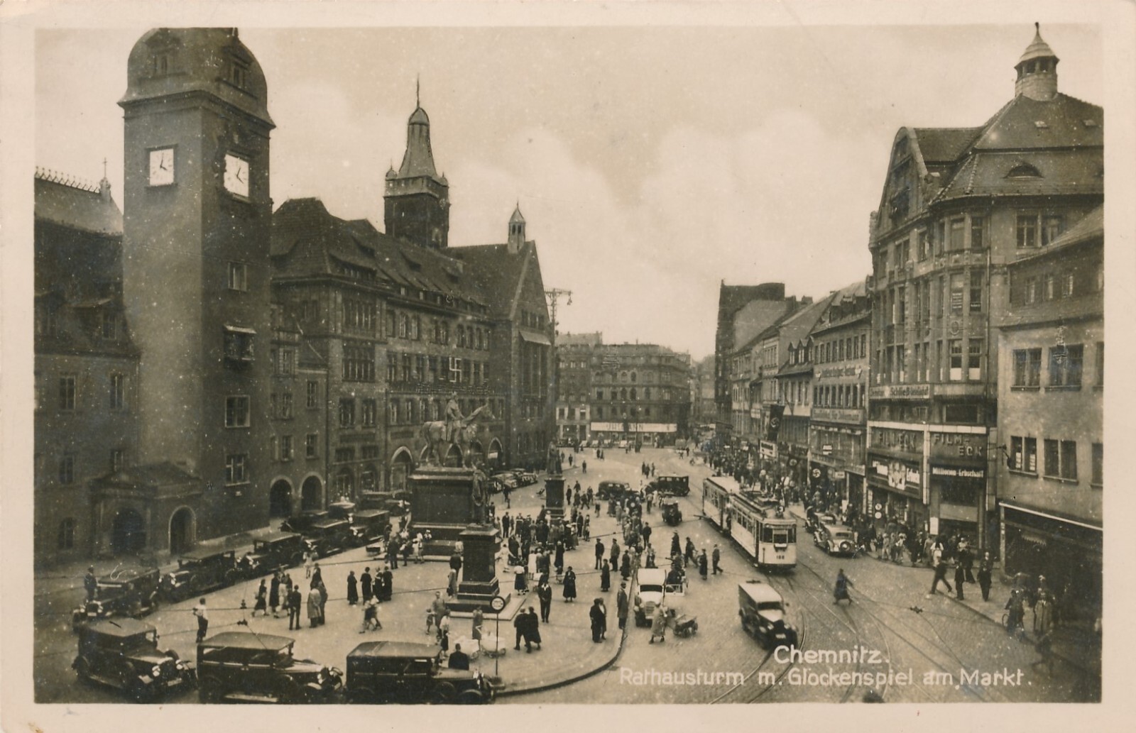 AK, Chemnitz, Rathausturm m. Glockenspiel am Markt, Sachsen (S1589)