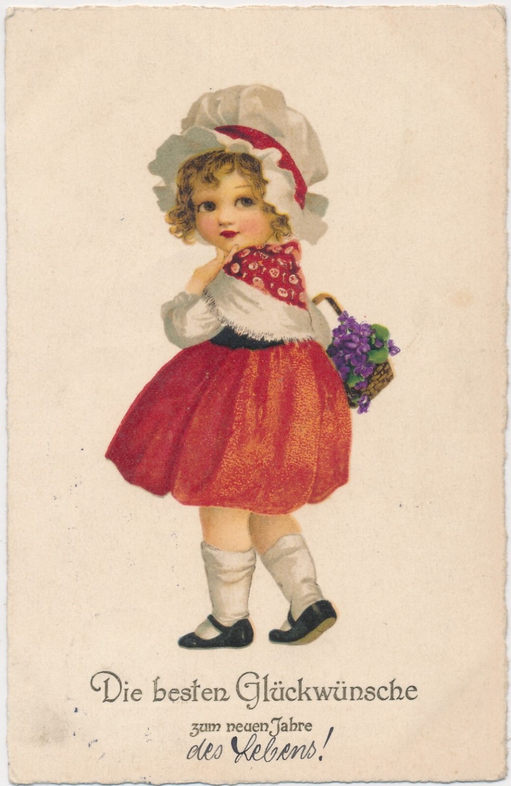 AK, Die besten Glückwünsche zum neuen Jahre, Kind mit Korb (S1642)