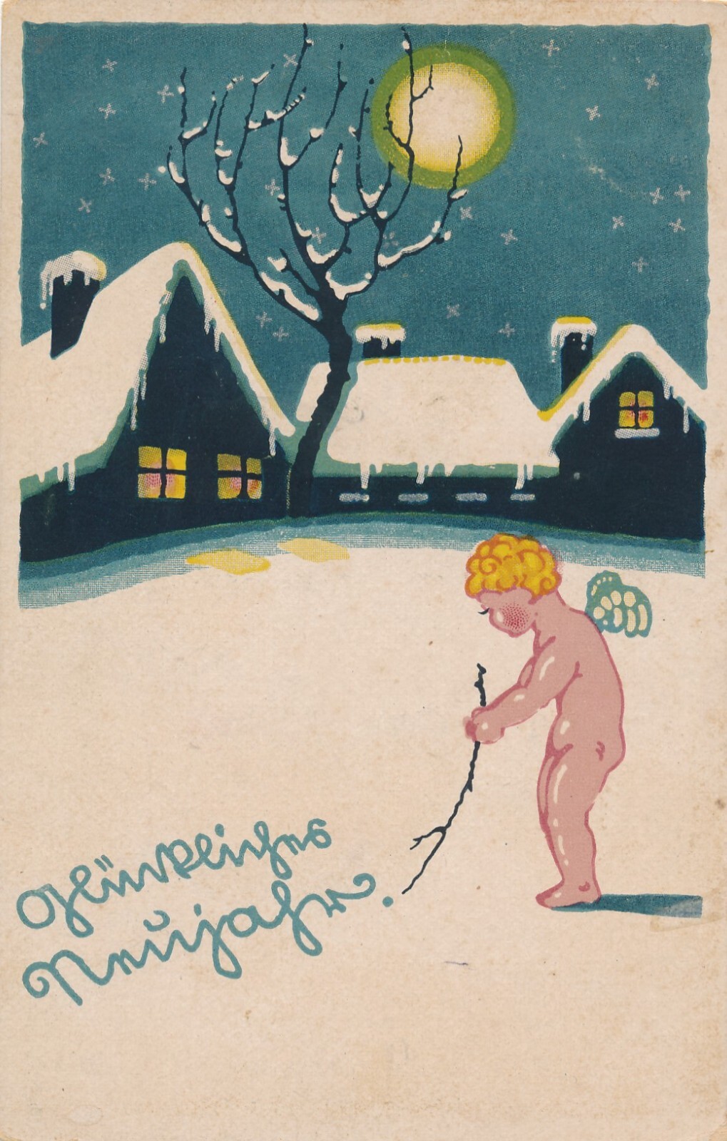 AK glückliches Neujahr Engel im Schnee (7200)