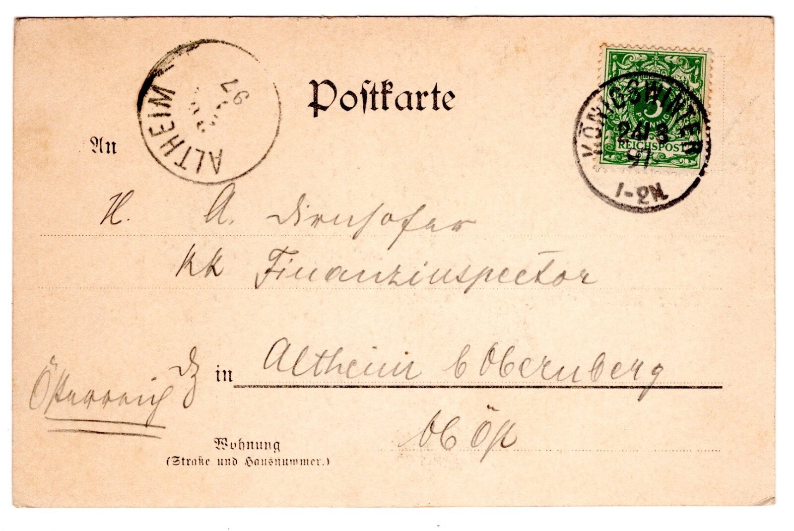 2 Kreuzer Ganzsachen - Karte aus Mähr. Weisskirchen (14913)