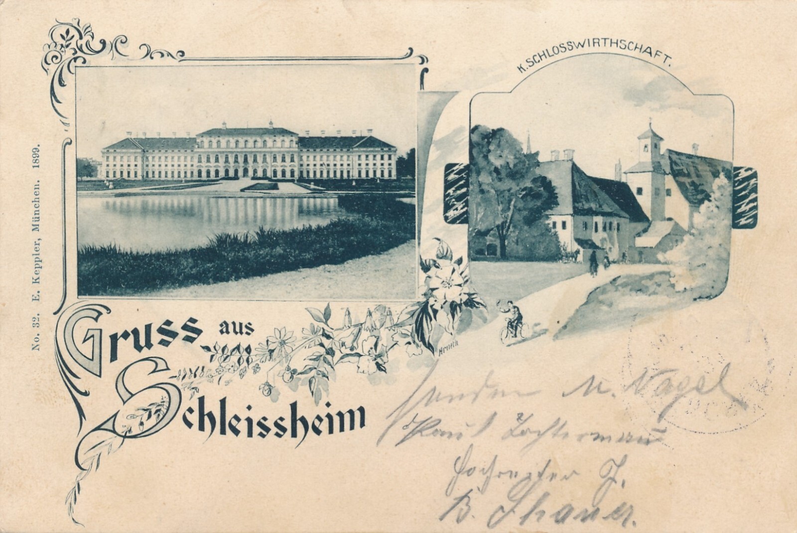 AK gruss aus Schleissheim mit K. Schlosswirtschaft Bayern (7275)