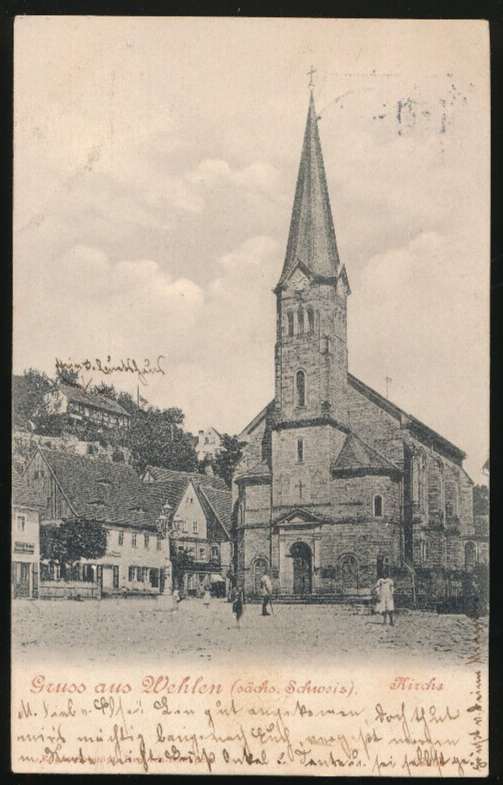 AK gruss aus Wehlen mit Kirche Sachsen (1868)