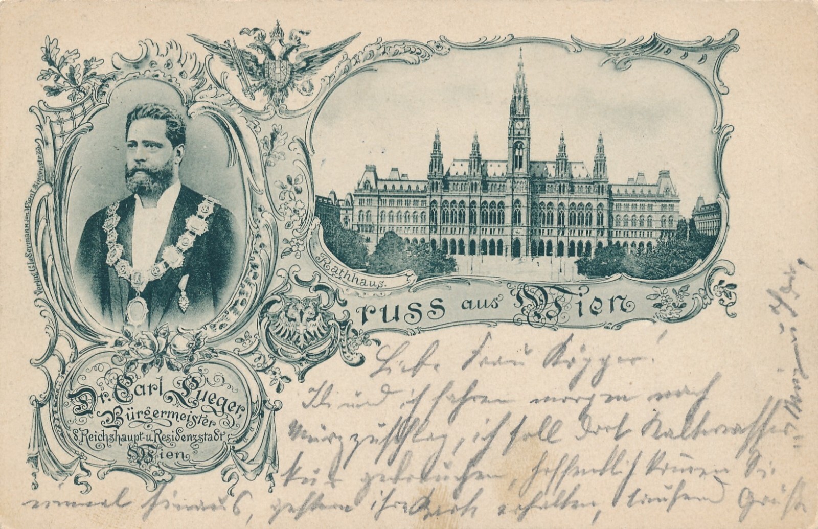 AK, Gruß aus Wien, Rathaus, Bürgermeister, Dr. Karl Lueger (S1162)