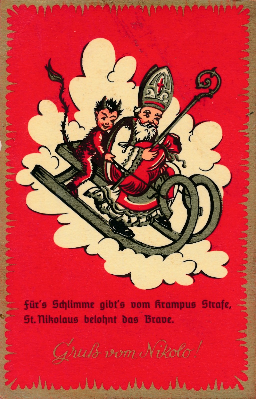 AK Gruss vom Krampus mit Nikolaus am Schlitten Ansichtskarte (17996)