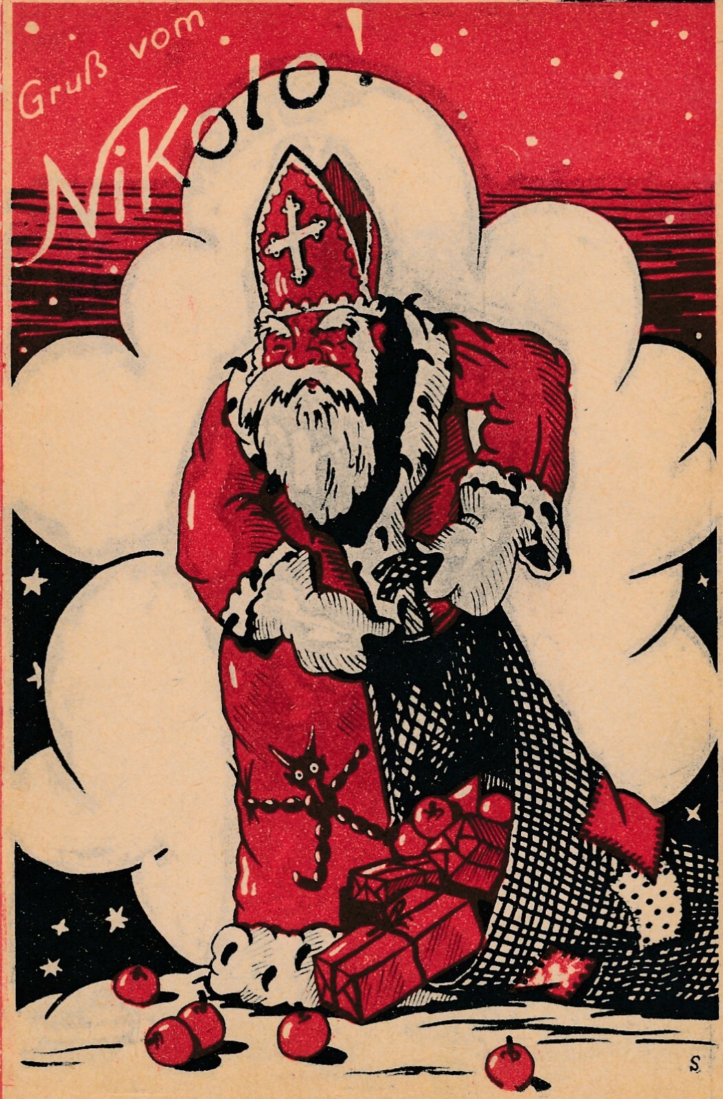 AK gruß vom Nikolo Kikolaus mit Geschenksack (6611)