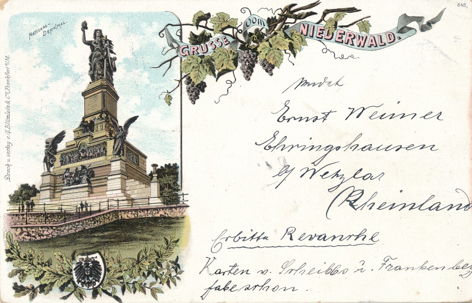 AK, Grüße vom Niederwald, Nationaldenkmal (S721)