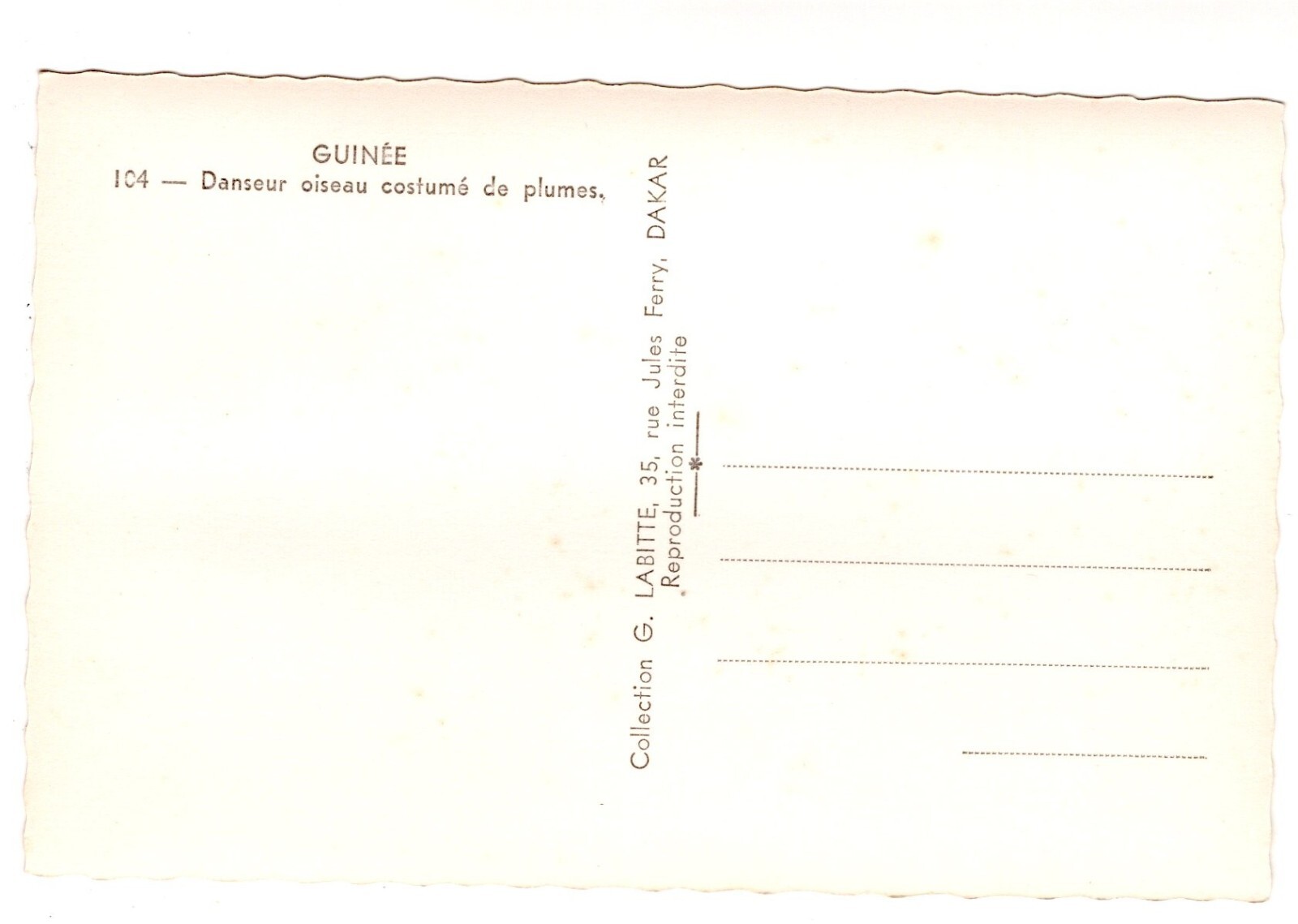 AK, Guinee, Danseur oiseau costume de plumes, Ansichtskarte (S7279)