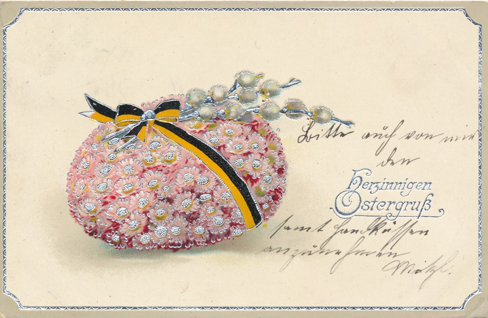 AK, Herzinnigen Ostergruß, Blumen mit Schleife , Ansichtskarte (S3676)