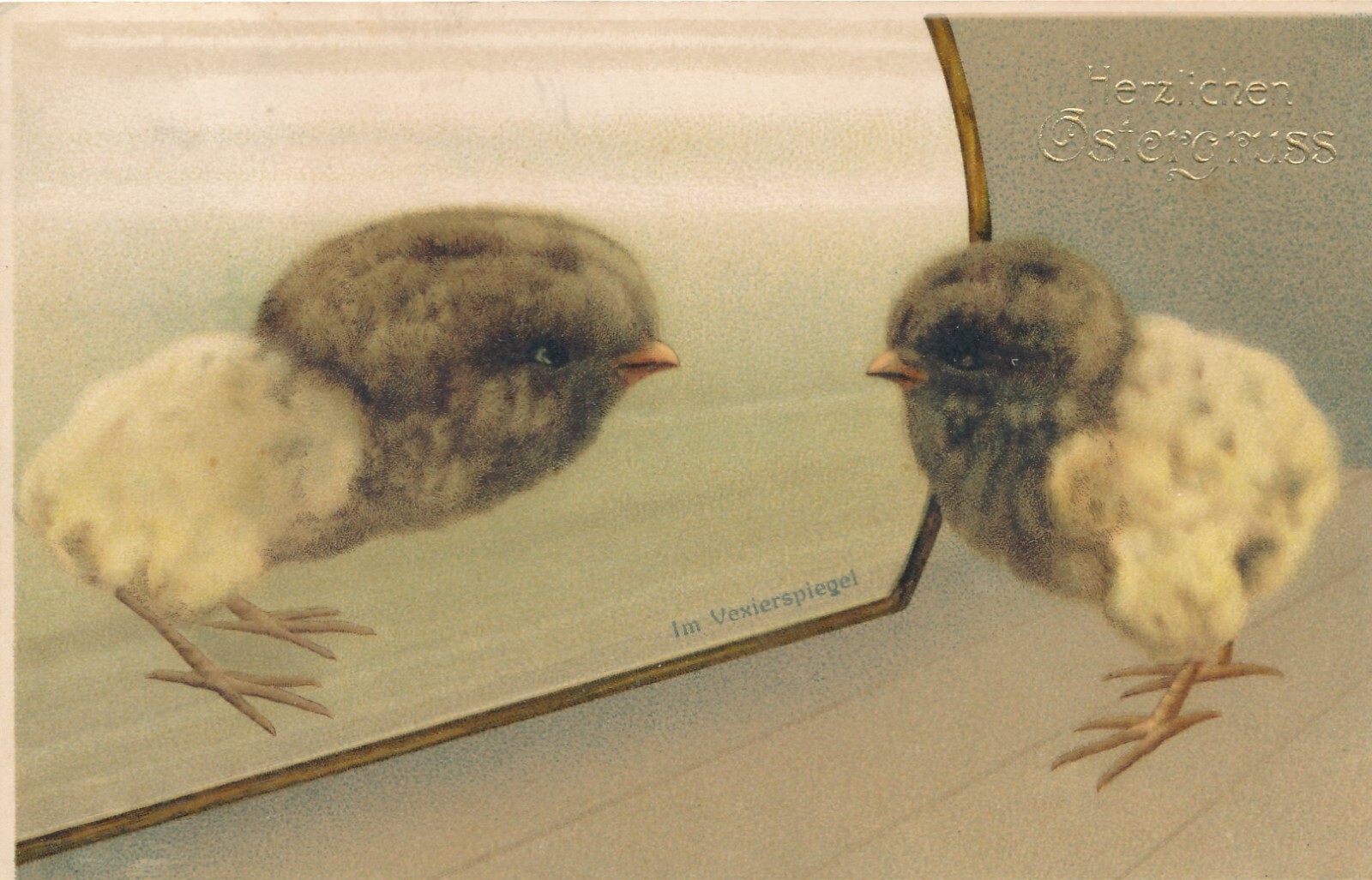 AK, Herzlichen Ostergruß, Küken vor Spiegel, Ansichtskarte (S3677)