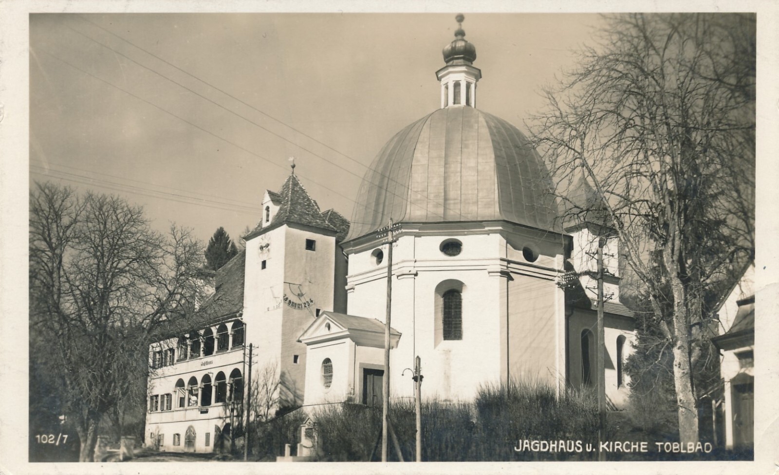 AK Jagthaus und Kirche Toblbad Steiermark Ansichtskarte (12441)