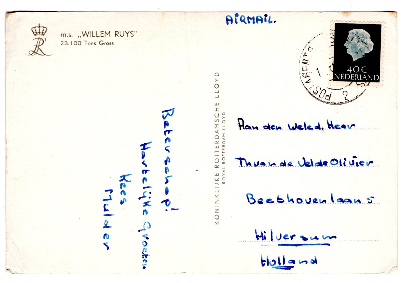 AK, m. s. Willem Ruys, Ansichtskarte (S5909)