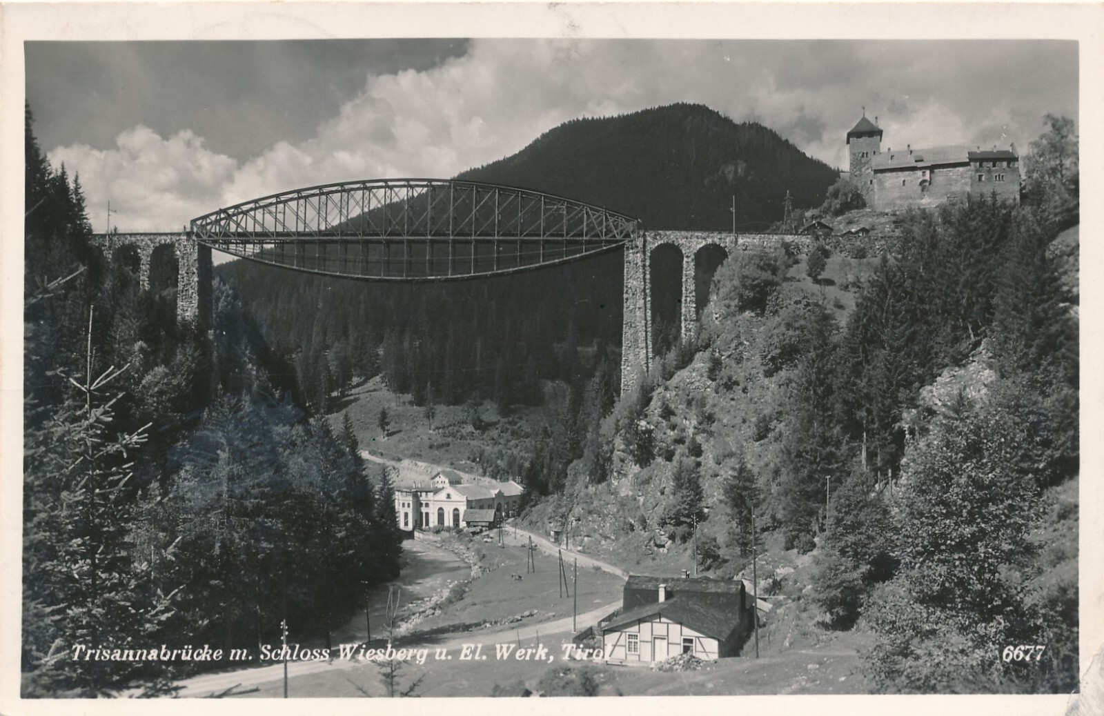 AK mit Traisbrücke und Schloss Wiesberg + El. Werk Tirol (7908)