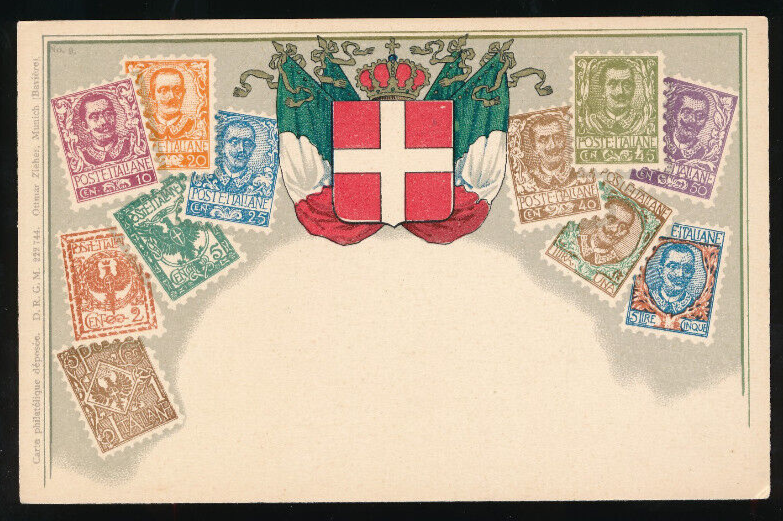AK mit Wappen und Briefmarken Italien (1246)
