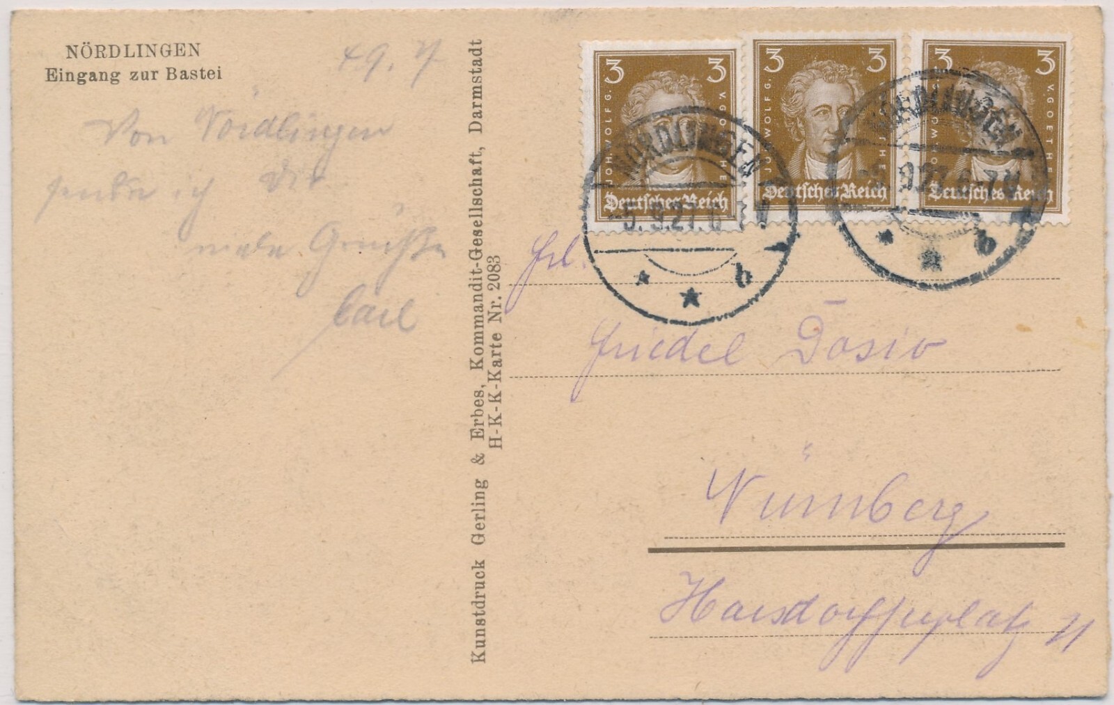 AK, Nördlingen, Eingang zur Bastei, Bayern (S1613)