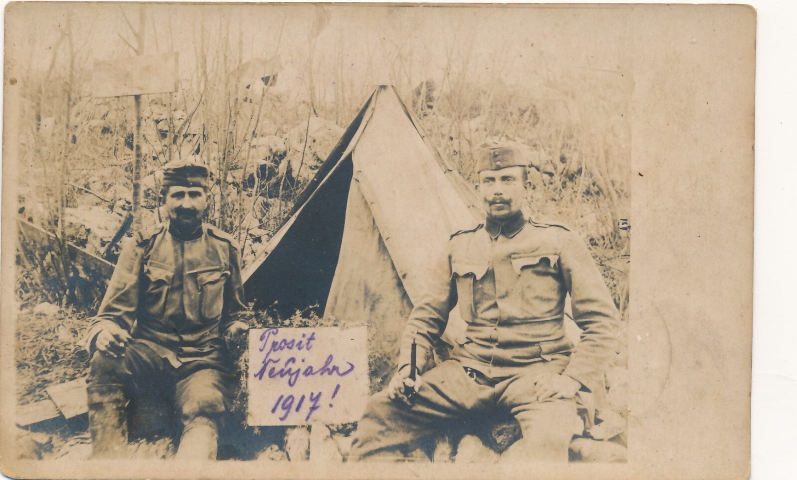 AK Prosit Neujahr mit zwei Soldaten Ansichtskarte (13973)