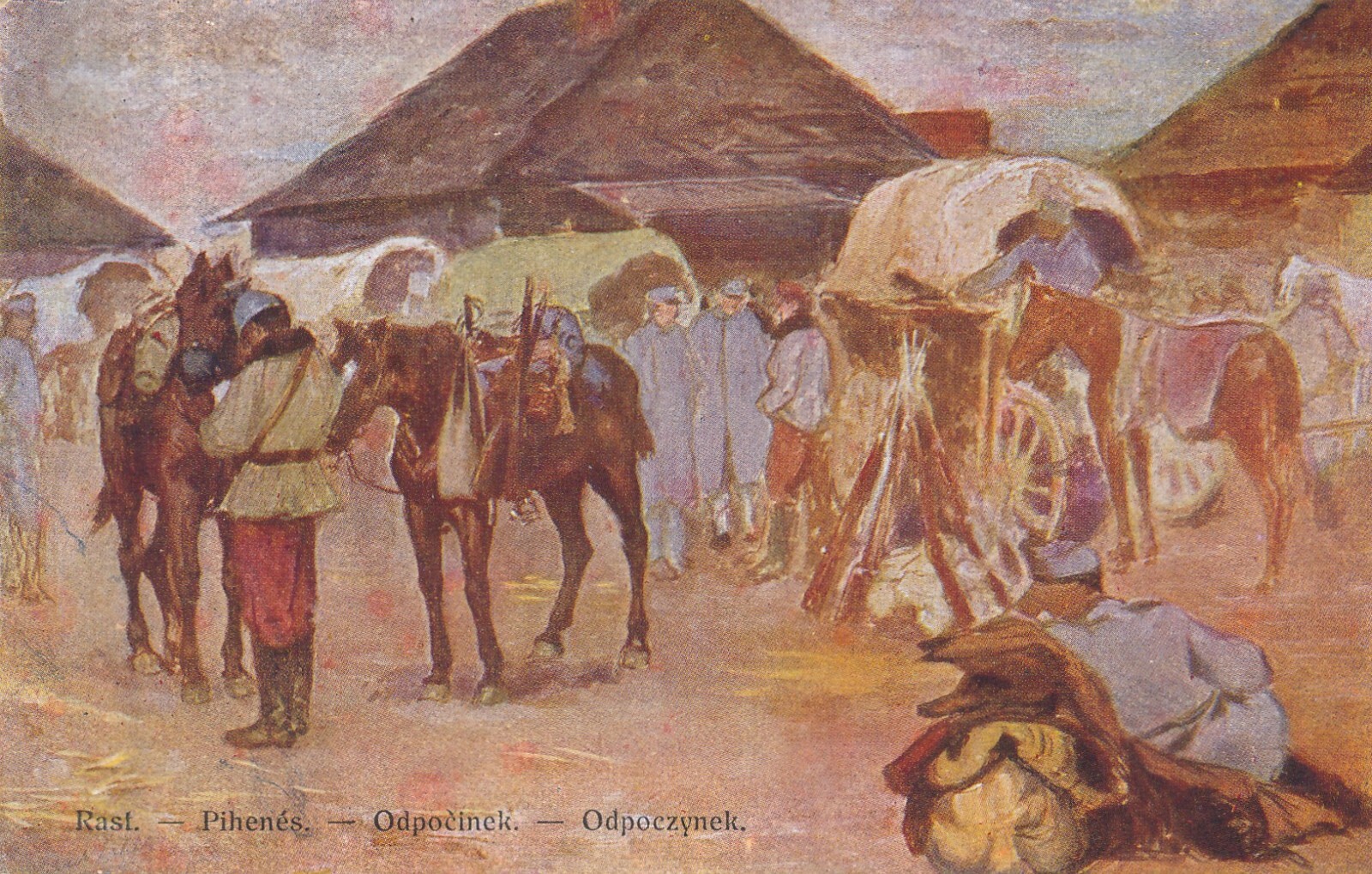 AK Rast Soldaten bei der Rast mit Pferden (10249)