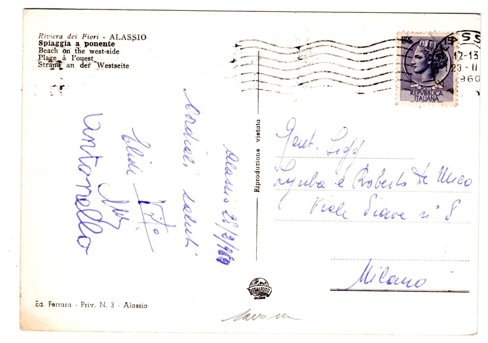 AK, Riviera dei Fiori, Alassio, Italien, Ansichtskarte (S5258)