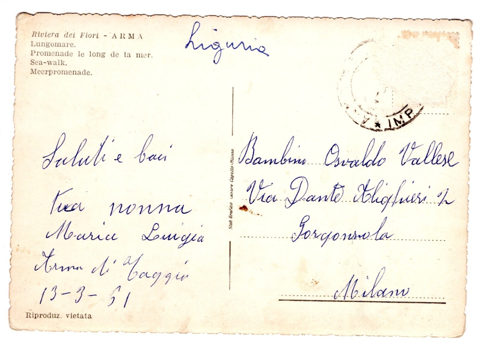 AK, Riviera dei Fiori, Arma, Italien, Ansichtskarte (S5247)