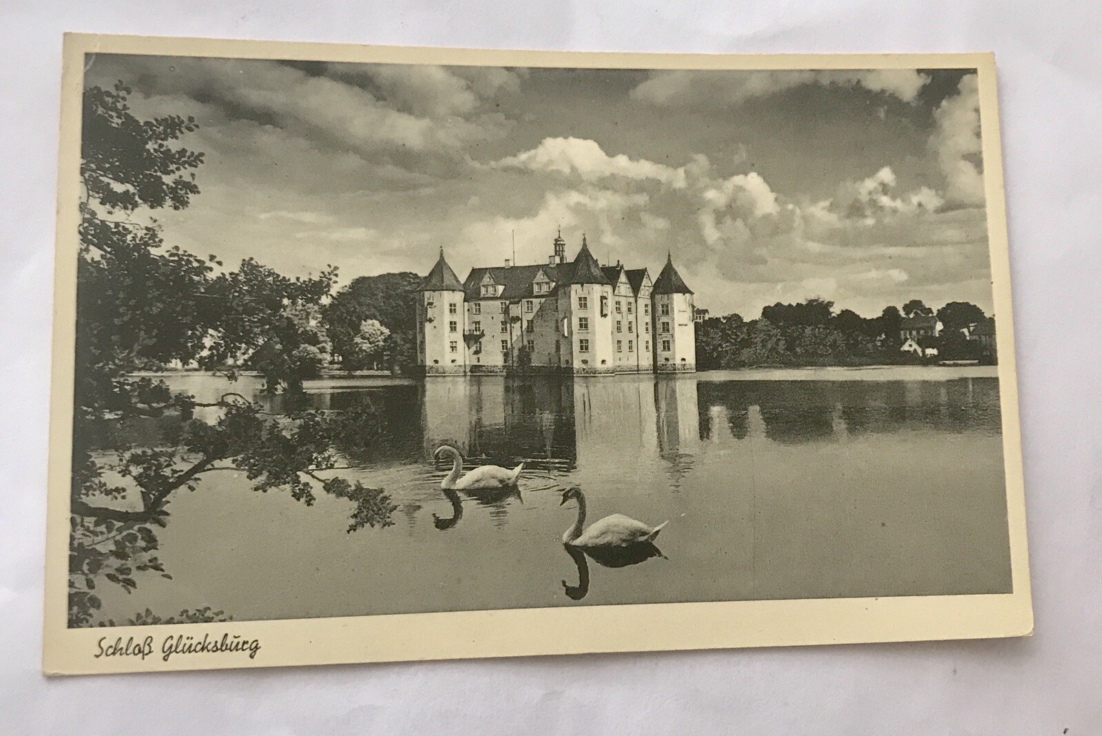 AK, Schloss Glücksburg, Schwäne, Teich (110265 BW)