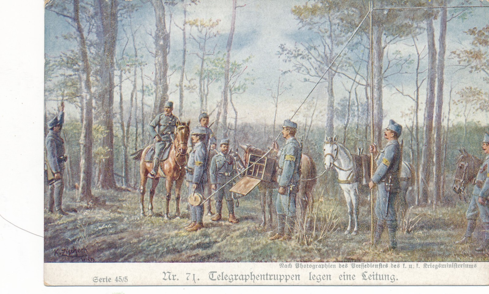 AK Telegraphentruppen legen eine Leitung Ansichtskarte (13780)