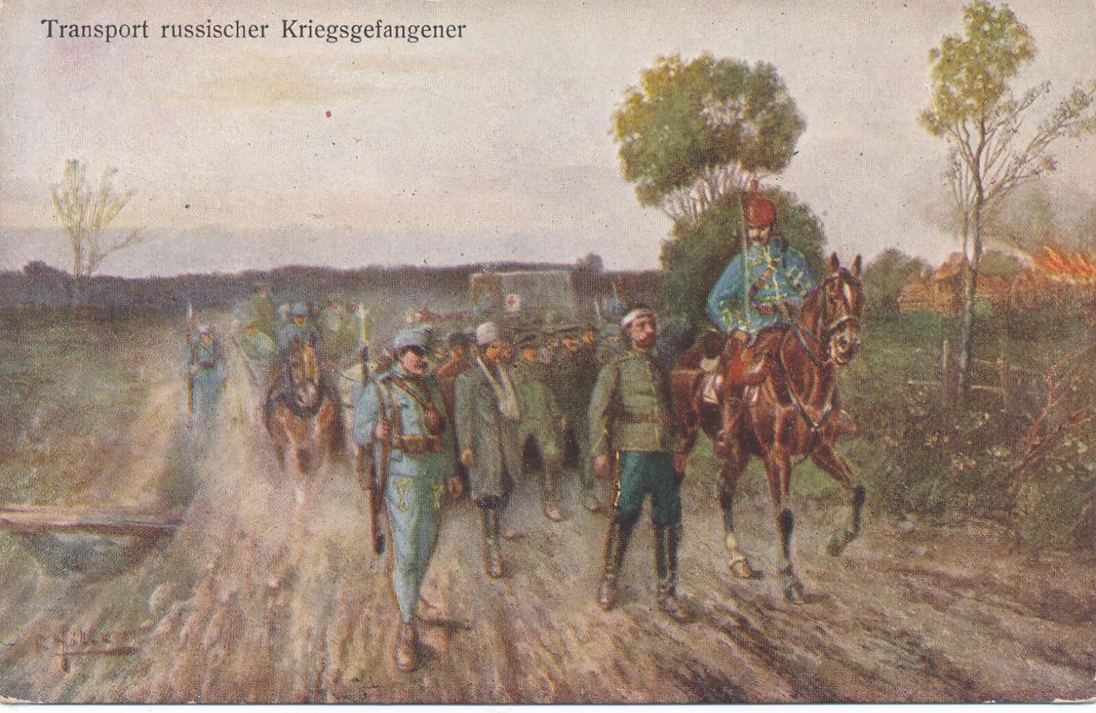 AK Transport russischer Kriegsgefangener Ansichtskarte (14014)