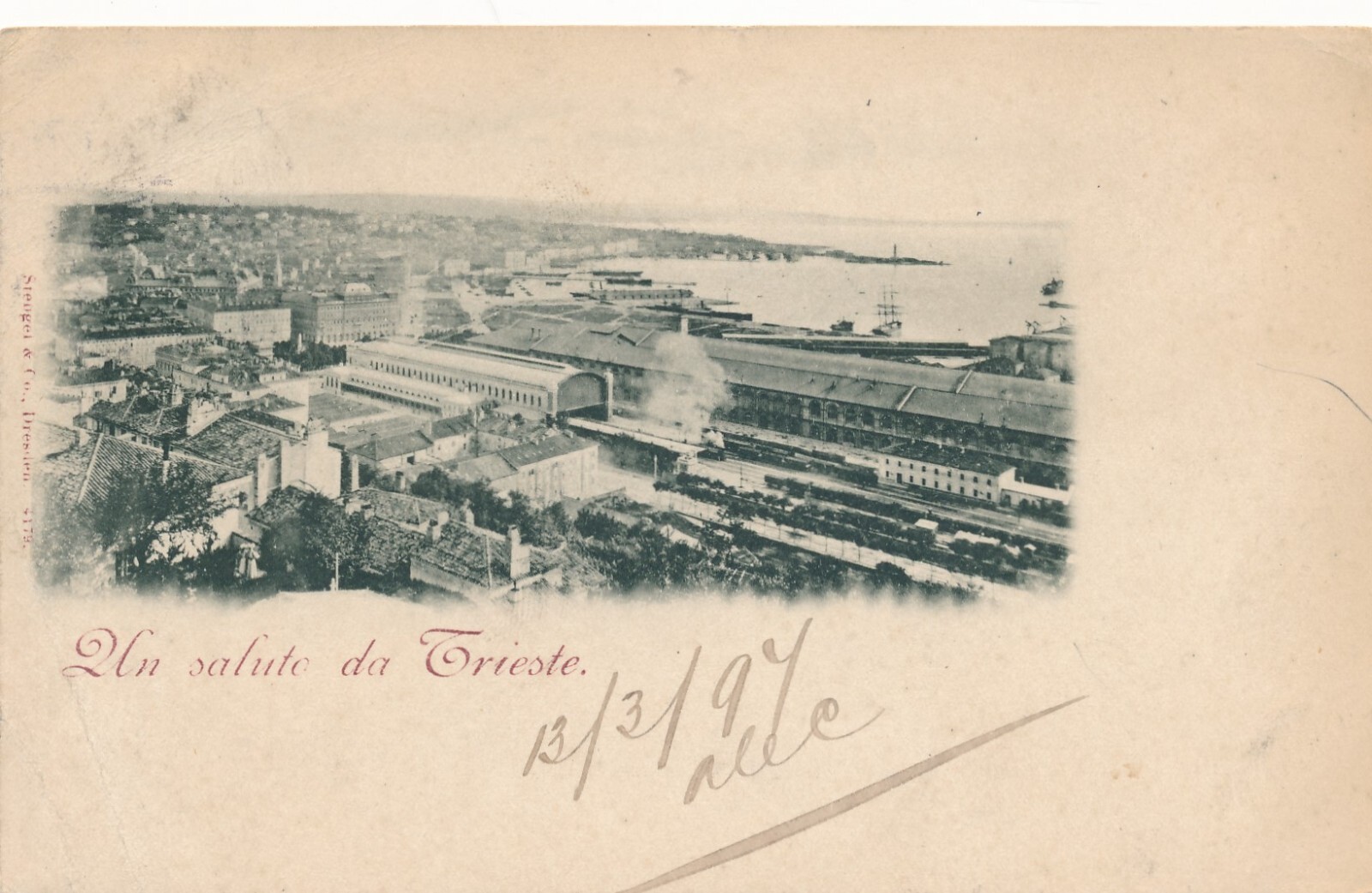 AK un salute da Trieste Italien mit Bahnhof Ansichtskarte (13981)
