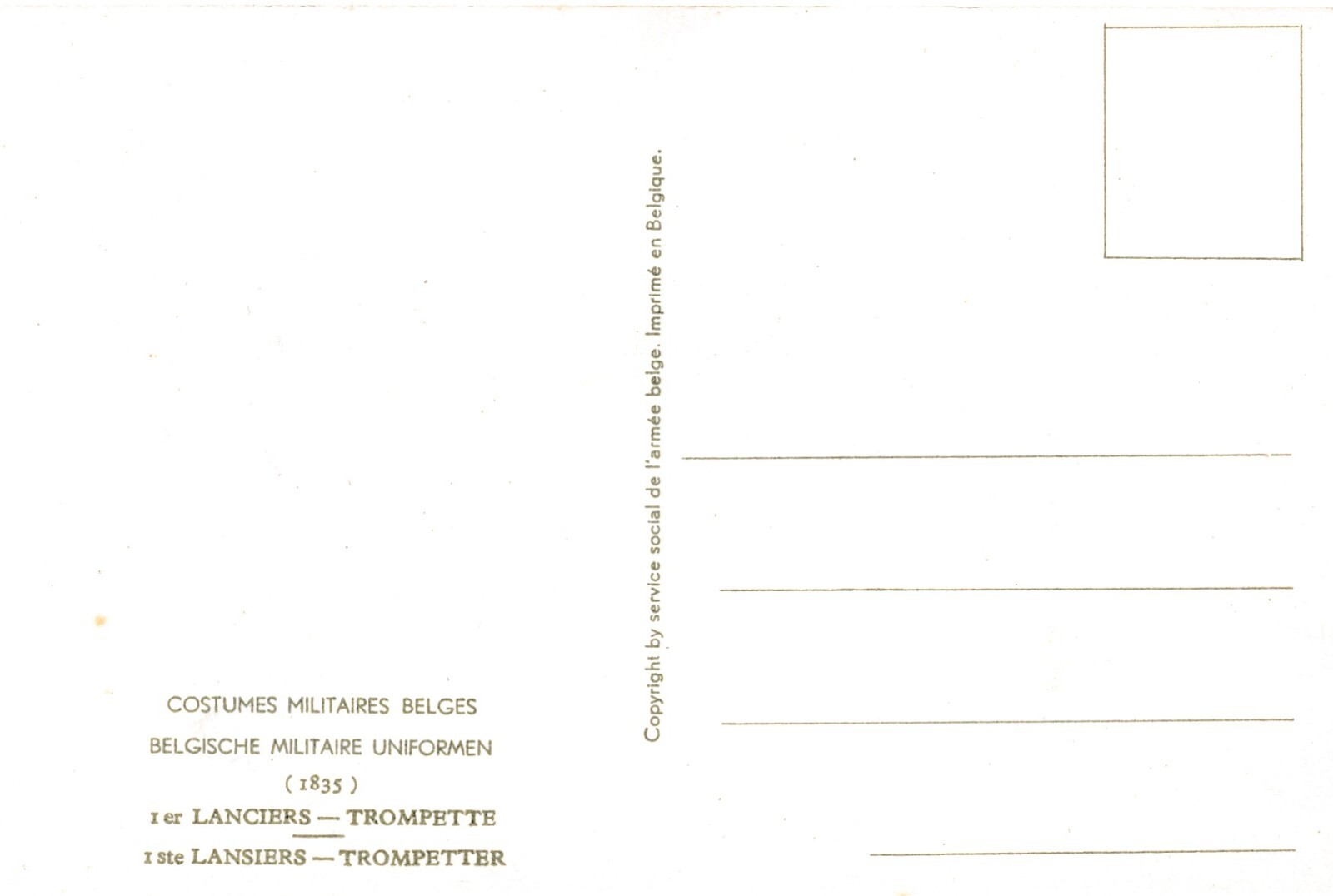 AK Uniform Belgien 1835 Lanciers Trompette Ansichtskarte (8752)