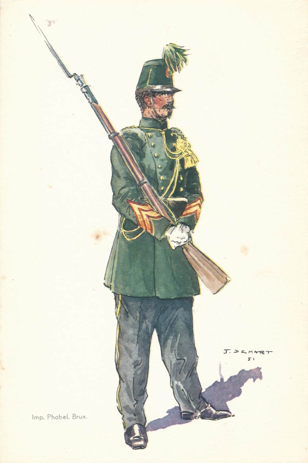 AK Uniform Belgien 1855 Chasseur a Pied Caporal Ansichtskarte (8739)