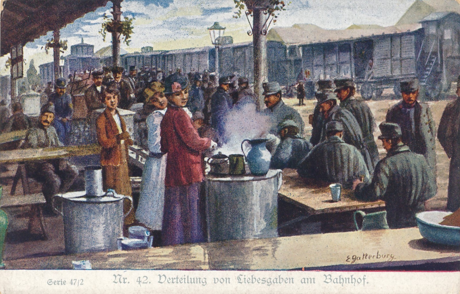 AK Verteilung von Liebesgaben am Bahnhof Ansichtskarte (13797)