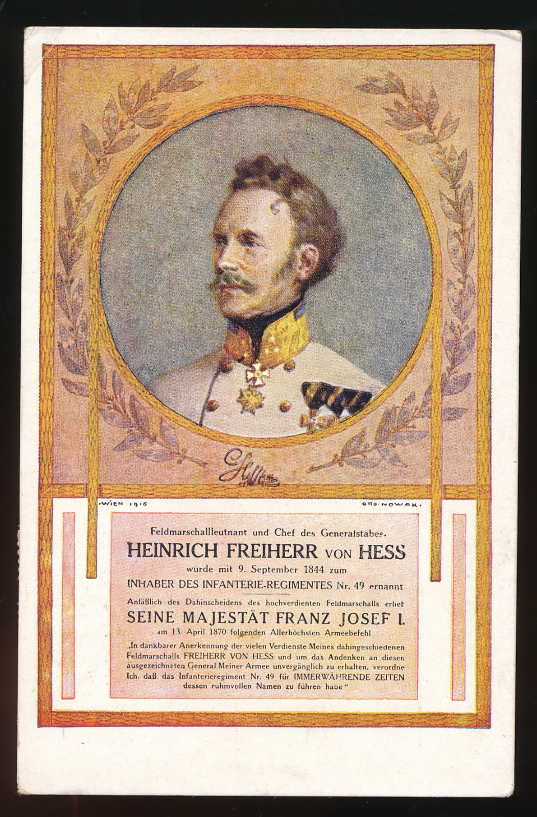 AK vom Feldmarschallleutnant Heinrich Freiherr von Hess (P195)